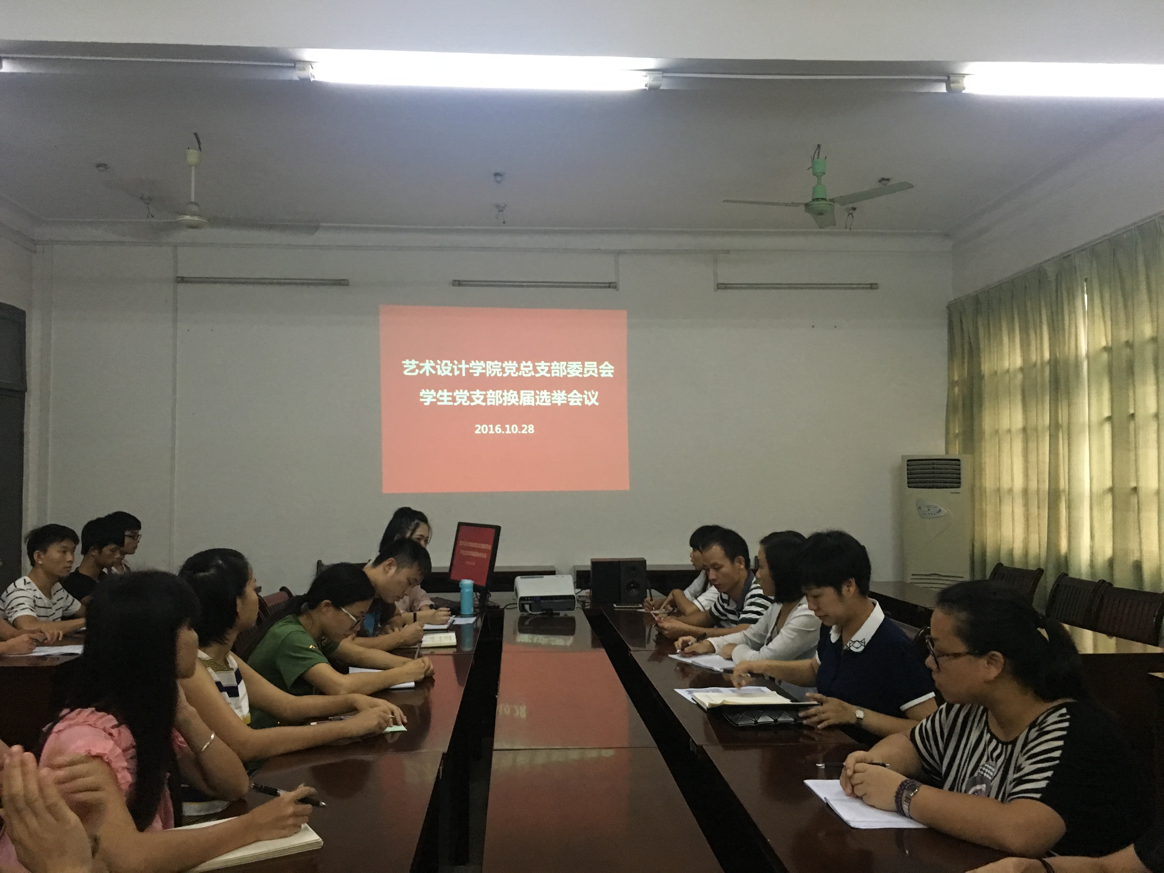 新闻网消息(文/艺术设计系 王慧、廖美暖 图/艺术设计系 廖美暖、白兰)2016年10月21日下午,艺术设计学院党总支部全体党员在艺术校区1号楼203会议室举行新一届党总支部委员换届选举大会。会议由学院党总支书记王慧主持,选举产生了新一届党总支9名委员。随后,召开了学院党总支部新一届全体委员大会,王慧同志当选为党总支书记,并就其他委员作出了分工安排。 2016年10月28日上午,该院党总支教工党支部在艺术校区1号楼203会议室召开支部党员大会。大会由总支部组织委员廖美暖主持,选举产生了新一届教工支部5名委员。随后召开了新一届支部委员会全体大会,朱裕同志当选为支部书记,并就其他委员作出了分工。 当日下午,该院党总支学生党支部在艺术校区1号楼203召开支部党员大会。大会由上一届党支部书记白兰主持,选举产生了新一届学生支部3名委员,随后召开了新一届支部委员会全体大会,白兰同志当选为支部书记,并就其他委员作出了分工。 会后,教工党支部和学生党支部分别向党总支部提交了该院党总支部委员会换届选举结果的报告。党总支部严格审核选举程序和结果,经研究决定,同意两个支部的选举结果,并分别下达了批复意见。至此,艺术设计学院党总支部及各基层党组织换届选举工作圆满完成。总支部将如实向学校党委汇报。新一届党总支部及下一级党组织委员会,将按照确立的工作任务和工作目标,增强责任感和使命感,充分发挥基层党组织的战斗堡垒作用和党员的模范带头作用,以改革创新的精神投入到学院建设发展的各项工作中去。