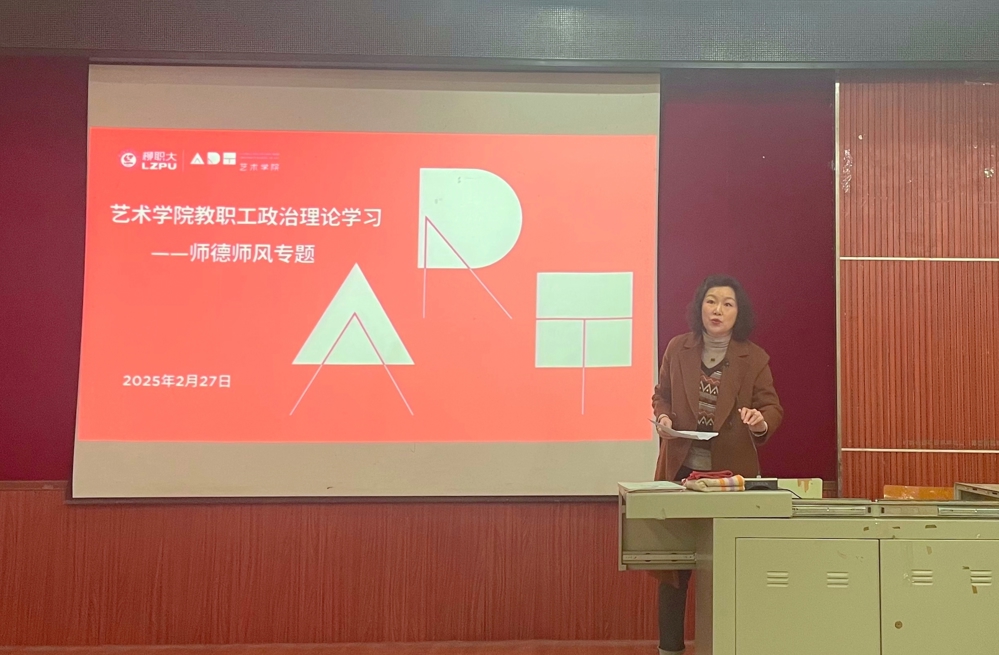 新闻网消息(文/艺术学院 杜昕 图/艺术学院 郭闯)2025年2月27日,艺术学院在德馨楼101教室召开全体教职工政治理论学习会议,师德师风专题学习。由艺术学院党总支书记崔智慧主讲,学院全体教职工参加学习。