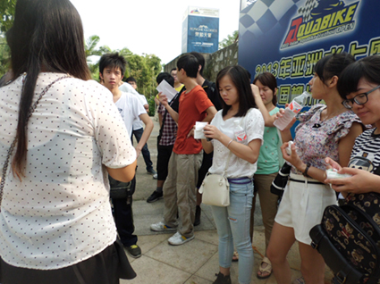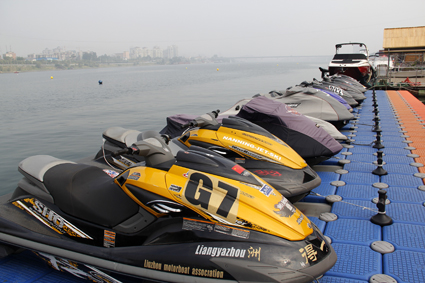 看到一溜烟排过去的摩托艇,学生们兴奋不已