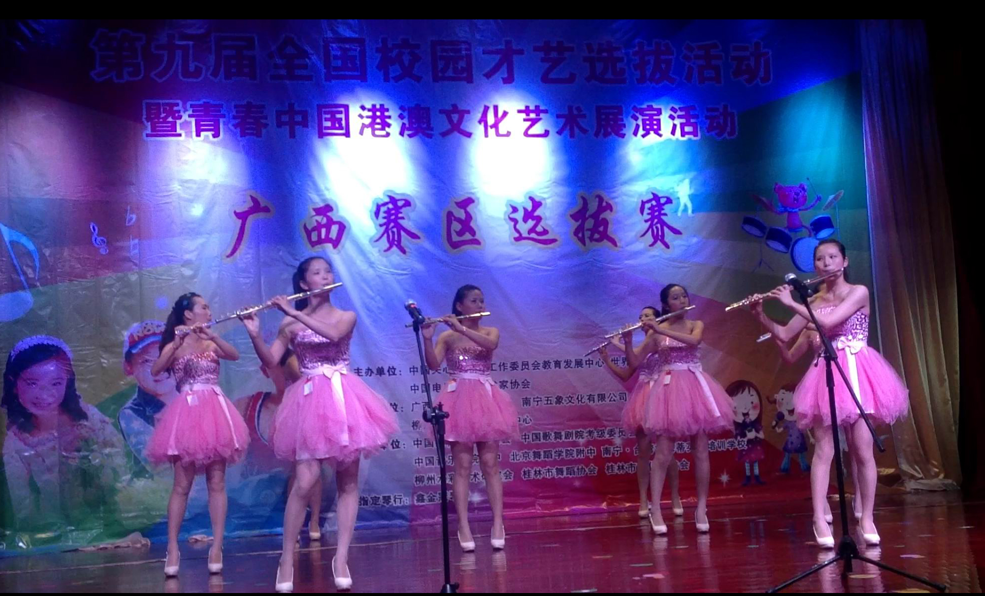 近日从2013年6月14日举办的第九届全国校园才艺选拔活动广西赛区选拔赛中获悉:我院大学生艺术团女子长笛乐坊在此次比赛中,荣获广西赛区大学组合奏一等奖和大学组独奏二等奖的优异成绩。