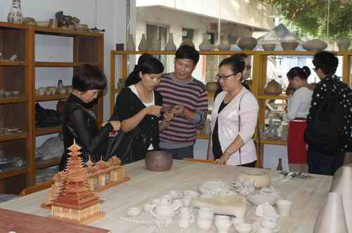 交流座谈会上,双方就人才培养模式和课程设置标准、实践教学模式、师资队伍建设、实训基地引入企业、学生日常管理和实习就业管理工作等方面深入交流。会后,来宾们参观了艺术设计系民族工艺产品设计研究中心、建筑装饰工程技术实训基地及纺织品装饰技术实训室。余添副主任对我院的热情接待表示感谢,希望今后双方进一步开展更深入、更全面的交流与合作。