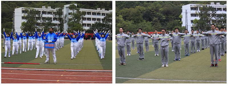 新闻网消息(记者 崔智慧 摄影 朱敬民、学院电视台、江山广告公司)德国诗人卢梭曾说过:身体虚弱,它将永远不会培养有活力的灵魂和智慧。柳职院的师生小伙伴们就深深懂得这个道理。如果你恰巧在11月18日的早上来到柳职院坡上田径场,你就会看到一片因运动而欢快起来的海洋,你就会感受到一段因激情而燃烧起来的时光! 当天上午,柳职院第十八届田径运动会盛大开幕!尽管本届运动会由于受近来阴雨天气影响而推迟了一周举行,但这迟来的盛会带给师生们的快乐却丝毫没有打折扣!看吧!运动场上彩旗飘舞,“挑战自我,突破极限”、“与体育同行,与健康和为伴”的标语为它穿上美丽的外衣!听吧!观众台上欢声雷动,摇旗呐喊的人群正共同演奏一曲最美妙的乐章! 开幕式于8点20分准时举行,学院领导石令明、阳旭、杨毅、林若森、瞿凡、鞠红霞、冉福松以及运动会组委会成员在主席台就座,全体师生员工参加了开幕式。开幕式由学院党委办公室主任黄志强主持。 田径场上,国旗队、院旗队、会旗队、鲜花队、彩旗队、裁判员队伍以及教职工方阵队伍、各系学生代表方块队在激昂的《运动员进行曲》声中依次从主席台前经过,整齐而有序的入场拉开了运动会的序幕。只见机电工程系的本科班学生方队意气风发;环食系学生方队通过队形变化展示系旗的出场别具一格;贸旅系由身着红色空姐制服的航空服务专业女同学们组成的方队让人如沐春风;艺术系学生方队手持6张师生共同绘制的学院立体图更是彰显深刻寓意。 庄严的升国旗、院旗、会旗仪式后,运动员、裁判员代表依次上台宣誓,表达了他们奋勇拼搏,创造佳绩以及坚持公平公正原则,做好裁判工作的决心。 石令明院长致运动会开幕词。他代表学校党委、行政向运动会的召开表示热烈祝贺,向刻苦训练、积极参赛的运动员致以亲切的问候!向为筹备组织本届运动会付出辛勤劳动的广大师生表示衷心的感谢! 石院长指出,在过去的一年里,我们坚持立德树人这一根本任务,围绕“国际引领、内涵升级、六化并举,建成特色鲜明高职名校”的发展战略,全面深化综合改革,持续推进“产教融合、校企合作”,推进现代学徒制试点、集团化办学、校企一体化办学,教育教学改革不断深化。强化内涵建设,加强“双师型”教师队伍建设和品牌专业、特色专业的建设,人才培养质量不断提升,在教育教学改革取得可喜成绩同时,学校的各项事业取得了更大的发展 。 一年一次的运动会,不仅是对广大运动员心理素质、身体素质和体育运动水平的一次大验收,也是对全体师生员工精神风貌的一次大检阅,石院长号召全院师生要继续发扬开拓创新、勇于争先的精神,在运动上展现出柳职人团结、协作、奉献的精神风貌。最后,石院长预祝全体运动员取得优异的成绩!预祝本届运动会取得圆满成功! 在教师广播操比赛中,各参赛方队服装统一,动作整齐,精神饱满,赢得了观众们的阵阵掌声和欢呼声。随后进行的学生团体操比赛更是将整个运动场的气氛推向了最高潮! 机电工程系学生为观众们带来的团体操表演名字叫《舞霸宇宙》,本舞蹈分三个段落,采用强悍有力与气势磅礴的舞蹈动作,表达了青年大学生的热情与力量;财物系学生带来的舞蹈《不一样的我们》,则展现了独一无二的“财物style”;贸旅系学生为观众带来一段《舞动青春 放飞梦想》的舞蹈,学生们手持五颜六色的花球,舞动着最自信的青春;由汽车系、电信系、环食系288名同学联合表演的《同心协力 系系相连》更是匠心独具,表演队伍伴随着激昂的音乐,一会儿变成一个同心圆代表心心相连,一会儿又变成八列纵队代表团结、友谊、拼搏、向上,一会儿变成奥运的五环展现奥运精神,一会儿又变出三个系部的首个大写字母G、D、H,为现场观众带来了一场精彩的视觉盛宴。 开幕式表演结束后,随着100米比赛的一声枪响,学院第十八届田径运动会的各项比赛如火如荼地展开了。同时进行的教职工的跳绳、“保龄球”等比赛则更体现了健身体育的趣味性。我院这样一场运动盛事还吸引到了柳州电视台《新播报》栏目前来采访报道。 让我们共同期待柳职院的运动健儿们在三天的比赛中再创佳绩!奔跑吧!柳职小伙伴们!
