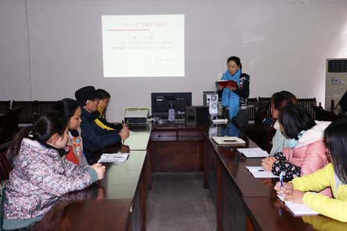新闻网消息(通讯员/艺术设计系 肖柳庆 摄影/廖桂英)2015年12月15日下午,艺术设计系党总支在艺术校区1号教学楼203教室召开“三严三实”第三专题学习研讨会,围绕“严以用权,真抓实干,实实在在谋事创业做人,树立忠诚、干净、担当的新形象”的主题进行了学习和研讨,会议由雍佳副主任主持。 雍佳副主任(兼书记)带领大家在前一阶段学习的基础上,继续深入学习党的十八大报告精神要点、党的十八届三中全会精神要点,学习习近平总书记重要讲话精神。另外,还学习了《中国共产党廉洁自律准则》、《中国共产党纪律处分条例》,对准则和条例的一些要点还进行了轮流宣读,以加深大家的记忆和理解。 全体与会党员(包括学生党员)根据会议主题并结合思想、工作、生活和作风实际,深入交流了认识、体会。黄芳老师认为:“党员的奉献精神很重要,要有纪律制度的约束,首先体现在出勤率的考核”,黄斌老师也谈到:“党员要有奉献精神,学生入党积极分子和党员民主生活会应与党章等相关内容联系起来,不要偏差太大”,白兰和曾静老师则希望开展一些形式丰富的党员活动,以增强党员队伍的凝聚力…… 最后,雍佳副主任(兼书记)作学习研讨总结。随着学习研讨活动的不断推进与深入,党员们认真践行“三严三实”,为全面落实我院“国际引领、内涵升级、六化并举,建成特色鲜明高职名校”的发展战略,促进我院各项事业健康稳步发展而努力!