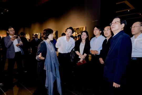 国家文化和旅游部副部长卢映川(右三)、山东省政协副主席孙继业(右二)出席作品展