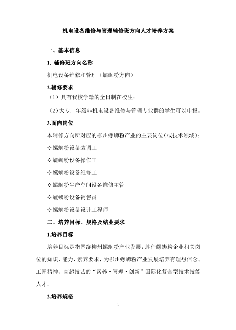 机电设备维修和管理(螺蛳粉方向)