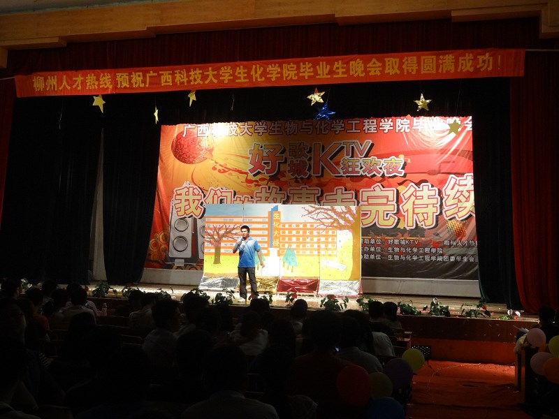 6月2日,在广西科技大学学生举办的活动上,覃宇权以赞助商的身份赞助1000元,图为覃宇权在晚会上讲话。