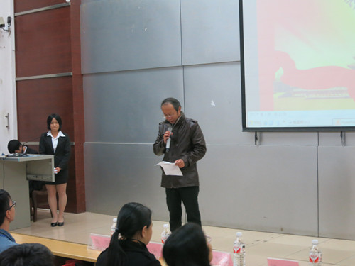 新闻网消息(通讯员 贸旅系 覃慧川 摄影 贸旅系 学生会)2014年11月17日中午,贸易与旅游管理系分团委学生会在博闻楼110阶梯教室举行了第三届和第四届学生会交接仪式。系部党总支书记牛永惠,分团委书记覃慧川以及辅导员夏佩、吴鹏老师应邀出席。