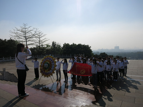 同学们走过长长的云梯来到烈士纪念碑前,听讲解员诉说那一段为民族、为国家、为自由进行解放战争无畏牺牲的激情故事。同学们在烈士墓前庄严肃立、默哀,并将手中洁白的花朵献给那些长眠于九泉之下的先烈们。
