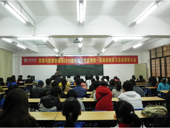 贸易与旅游管理系召开2010级连锁经营管理专业第一阶段顶岗实习总结暨表彰大会