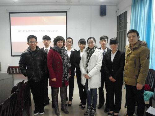 12月22日上午,该系召开柳职院洗衣与布草实训室团队竞聘及交接会议,林志红副主任、酒店管理专业负责人黄珣以及实训室指导教师李银昌出席会议。该系2014级酒店管理专业的学生团队参与了实训室管理团队的竞聘。