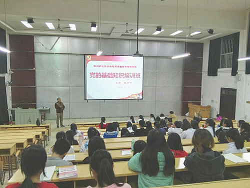 新闻网消息(文、图/贸易与旅游管理学院 农培樱)为增强学生思想政治教育,加强党的知识普及,2016年12月21日至23日晚,贸易与旅游管理学院在博闻楼110教室开展2016级新生党课教育培训活动。此次培训由该院党总支副书记陈月明老师,学生支部书记陈晓萍老师及农培樱老师主讲。该院2016级近80名入党积极分子参训。