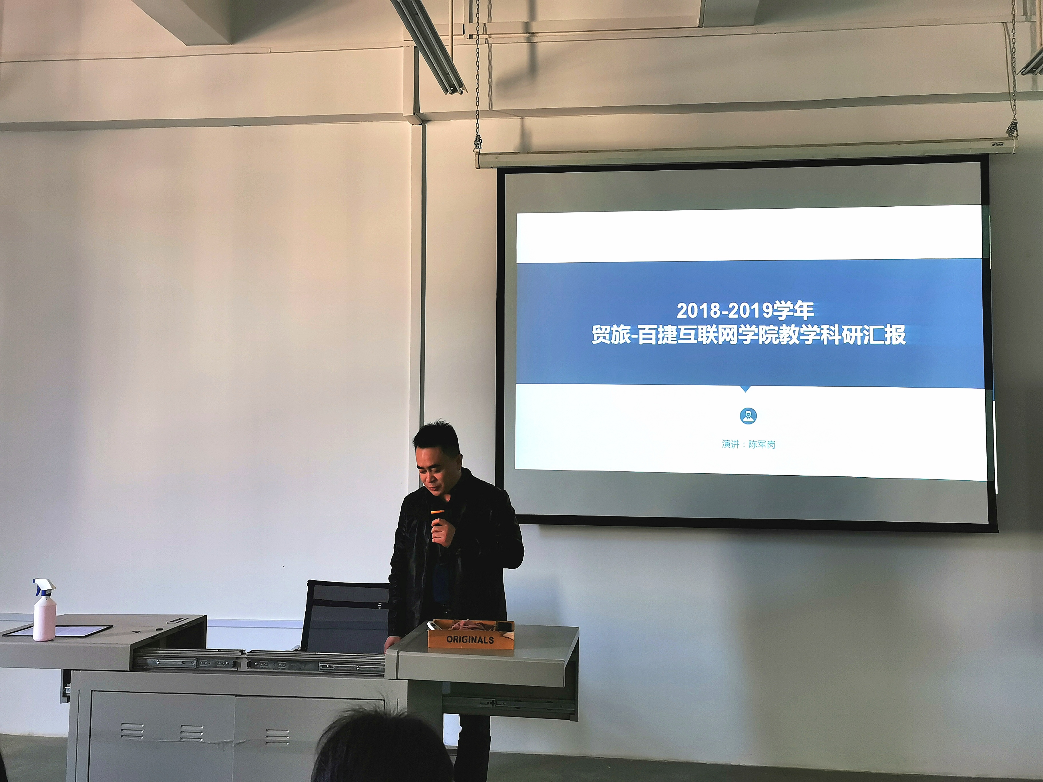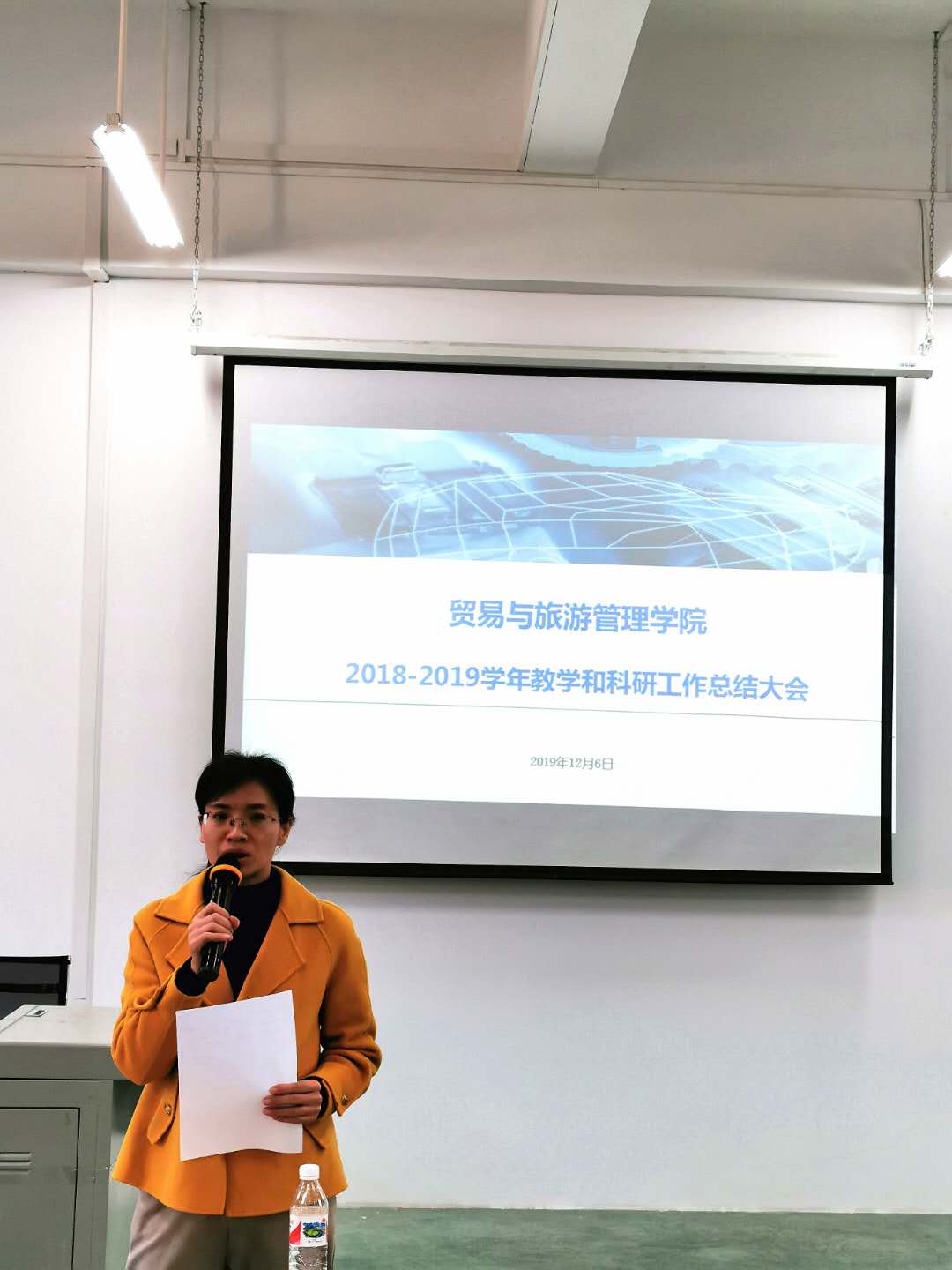 (文/贸易与旅游管理学院 赵萃 图/贸易与旅游管理学院 温长生)2019年12月6日下午3点10分,在崇文楼420教室召开了2018-2019学年贸易与旅游管理学院教学工作大会,会议由谭欣副院长主持,邀请了学校教务与实训管理处处长韦林出席,校企合作的百捷互联网学院、华育中航学院领导和老师以及贸易与旅游管理学院全体教职工参加了会议。