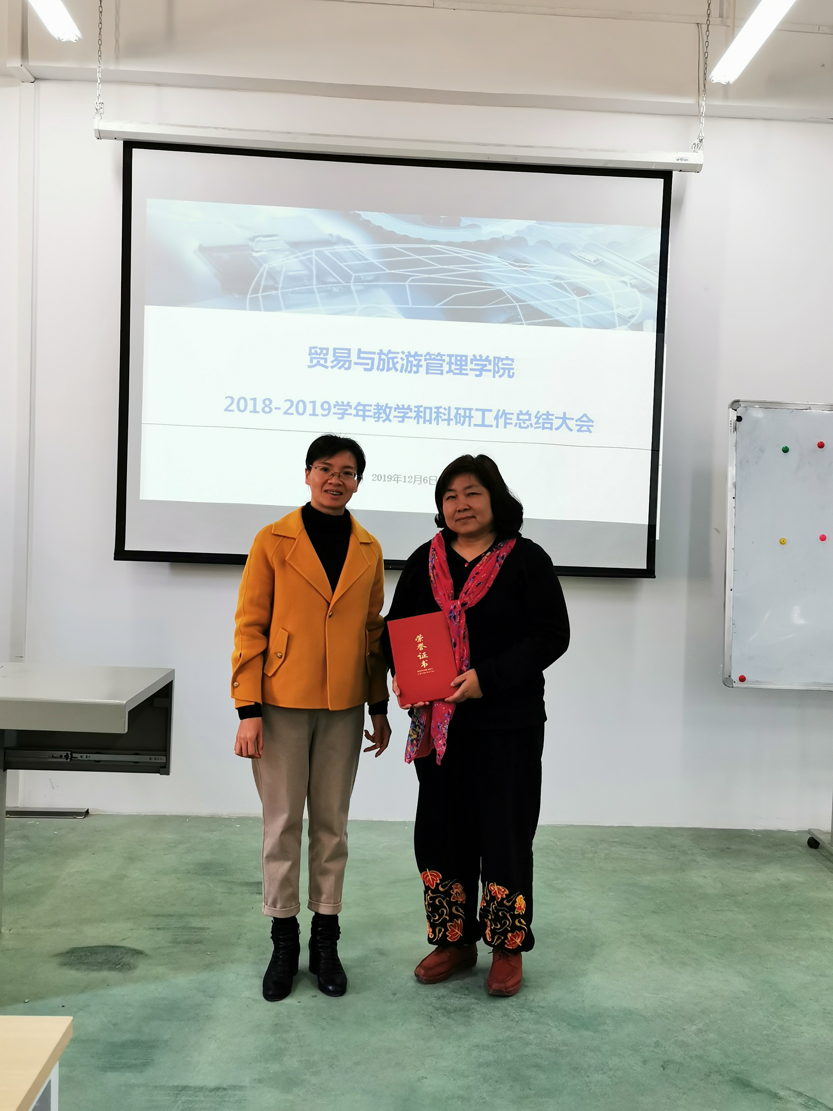 会议还请了韦林处长为对一年来做出突出贡献的贸易与旅游管理学院的教师进行了颁奖。