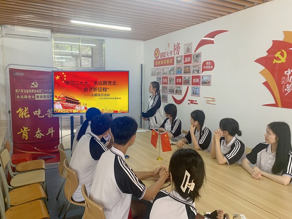 首先,全体成员深入学习党的二十大报告中有关教育的专题内容,以提高学生自我管理和教育的能力,进一步增强青年学生对中国特色社会主义的信仰,坚定青年永远跟党走的信心和决心。其次,通过开展《学习贯彻二十大,与时俱进跟党走》学习交流会及观看人民日报短片《非凡十年》及《未来中国》,带领同学们一齐回顾我国过去十年的非凡成就,让同学们感受到了国家变化之大、党和人民之伟大,并对祖国的未来充满希望。最后,团支部开展关于党的二十大理论知识的问答赛,同学们争先恐后,积极应答,表达出对学习党的二十大内容的热情,加强自身对国家的社会认同感,全面贯彻“奉献、友爱、互助、进步”的志愿精神,积极奉献。