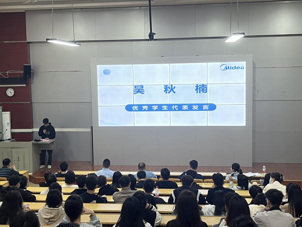 树先进,扬精神。美的集团企业督导团公布了此次项目的两位优秀学生代表,两位优秀学生上台进行发言。他们表示,以“双十一”活动为载体,通过全过程全要素的“售前-售中-售后”的电子商务岗位实践,不仅提升了对电子商务专业的认知,进一步明确了职业生涯规划,而且是印证所学的最佳路径,以“理论-实践-理论”的螺旋上升模式锤炼了自身的专业技能,并培育了自身学会解决问题的科学思维和冷静沉着的心性,也认识到团队的力量如海的一浪,鼓舞推动他们坚定朝着目标的彼岸稳健前进。随后,大会对获得“转化之星、销售之星、体验之星”的优秀实习学生进行颁奖。
