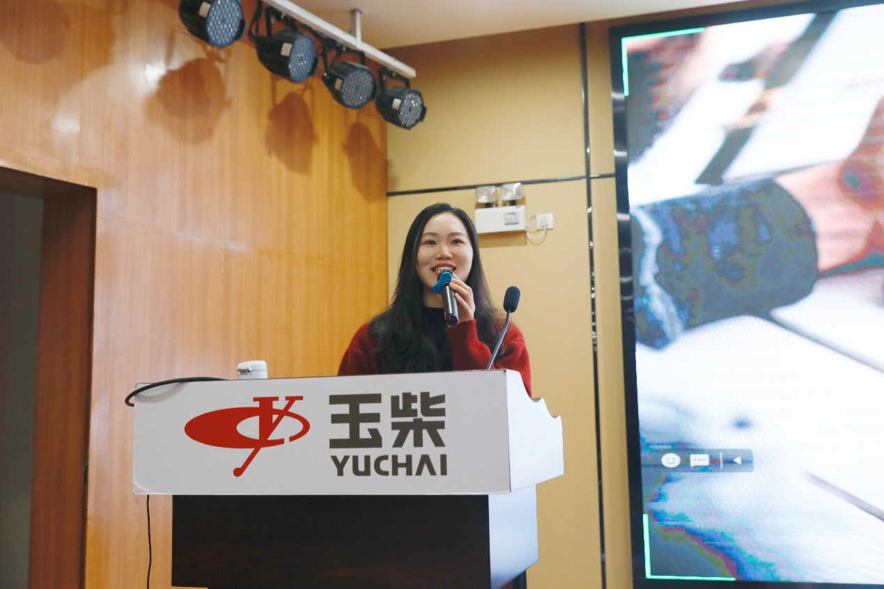 贸易与旅游管理学院江朋老师在现场授课(图片提供:广西玉柴品牌部)