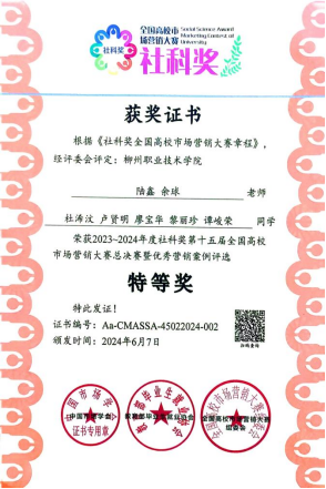 2023-2024年度社科奖第十五届全国高校市场营销大赛总决赛暨优秀营销案例评选特等奖 来源: 发布时间:2025-05-30 11:03:48 浏览次数: 次 【字体:小 大】 一审:贸旅一审 终审:贸旅三审 分享到: 【打印正文】