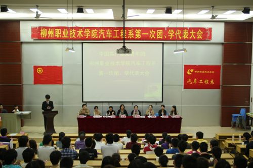 2012年4月9日晚,共青团柳州职业技术学院汽车工程系第一次团、学代表大会在学院博闻楼110教室召开。院团委王慧书记、学生工作处景凌凌副处长、汽车工程系党总支杨琳书记、汽车工程系学生党支部书记李嫦老师、分团委书记黄碧莹老师出席了本次大会。此外,各兄弟系部分团委书记、系辅导员老师们和各系学生会、社团代表也应邀出席大会。