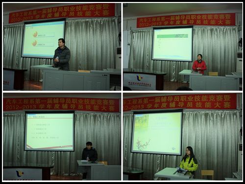 据悉,下学期开学后,汽车工程系还将继续进行“汽车工程系第一届暨2012-2013学年度辅导员技能大赛”其余几个项目的比赛,包括即兴微博写作、理论知识竞赛、主题班会活动、与学生谈心谈话、情景案例分析、主题演讲比赛等,最终将在7月份将所有子项目的比赛积分累加最终评选出本届辅导员技能大赛的一、二、三等奖,充分调动辅导员学习和工作的主动性、创造性,提升辅导员工作能力,陶冶辅导员职业情操,强化敬业精神,打造一支学习型和研究型的辅导员队伍。(文/唐艳 图/伍帅)