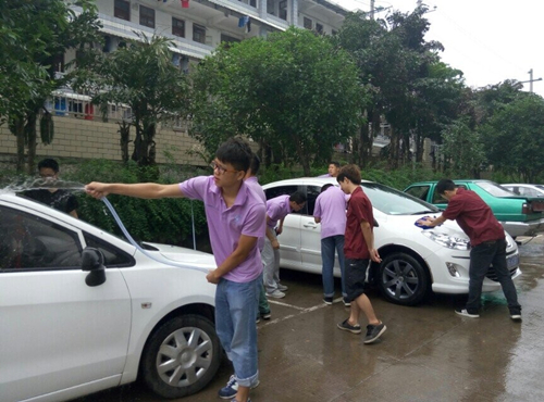 活动过程中,同学们饱含热情,配合默契,分工合作,安排有序,细心耐心地为每一辆车冲水擦洗,尽管累得满头大汗,可没一个人说一句怨言,看着被洗得一尘不染的车,再累也感到值得。宋武生同学说:“此次活动是对我们课堂所学知识的一个检验,不仅提高了我的动手能力,更可以尽我们的力量回报平时辛勤付出的老师们,心里特别高兴与满足。”
