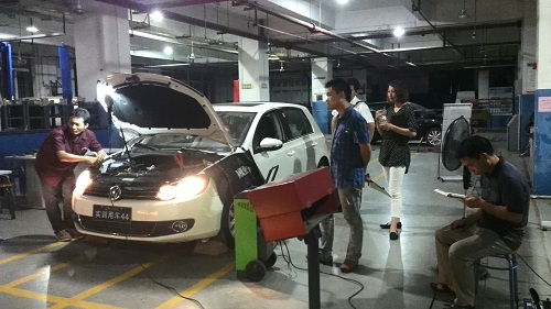 新闻网消息(通讯员/汽车系 邓益民)6月28日至7日1日,中德SGAVE项目在我院开展了2013级学生的中期考试。考试试题由德方开发,采用基于客户委托的过程考核方式,理论与实际高度融合,全面考察学生的真实水平。参加中期考核的学生需要通过三个工位(大灯检验与调整、轮胎拆装与动平衡、汽车外观修复)的考验。每个工位分别由一名企业技术专家和学校教师担任考官。每个工位需要完成任务分析、任务计划、任务实施、任务检查四个考核步骤,耗时75分钟。项目组计端、谭新曲、李海青、黄镇财、黄鹏超等5位老师与来自大众经销企业的两位经理担任考官,所有考官均通过保时捷厂商培训并获得资格认证。