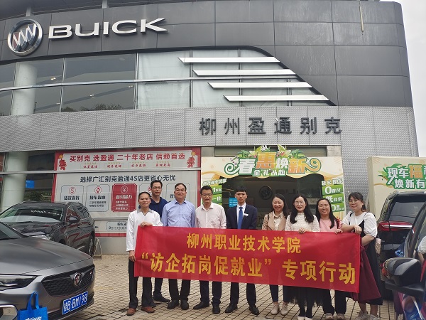 新闻网消息(文/汽车工程学院 韦夏利 图/汽车工程学院 韦红旅)为了贯彻落实教育部提出的“高校书记校长访企拓岗促就业”专项行动,拓展毕业生就业渠道,做好毕业生就业服务工作,4月22日下午,汽车工程学院访企拓岗专项行动小组成员在党总支书记韦耀业的带领下,学生科科长曾志,专任教师及辅导员代表一行共8人开展了访企拓岗促就业专项行动,在柳州市学院路汽车4S店聚集区,访企小组成员马不停蹄地走访了四家企业,分别是上汽大众柳州桂鹏4s店,柳州广汇弘耀沃尔沃4S店,柳州盈通别克汽车销售服务有限公司,广汽传祺柳州广百店。