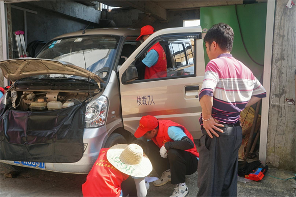 “擎鸣”志愿服务是柳州职业技术学院汽车工程学院专业特色志愿服务活动。14日下午,莫智富、莫华等实践队员带上专业的汽车检修工具,结合汽车技术专业技能,走到村民家门口,为村民带来汽车供电系统检修与空调系统养护服务,为家庭用车提供汽车检修等技术帮扶与便利。汽车学子作为新时代青年汽车人,秉承工匠精神,倾听群众需求,以实际行动迎接党的二十大胜利召开。