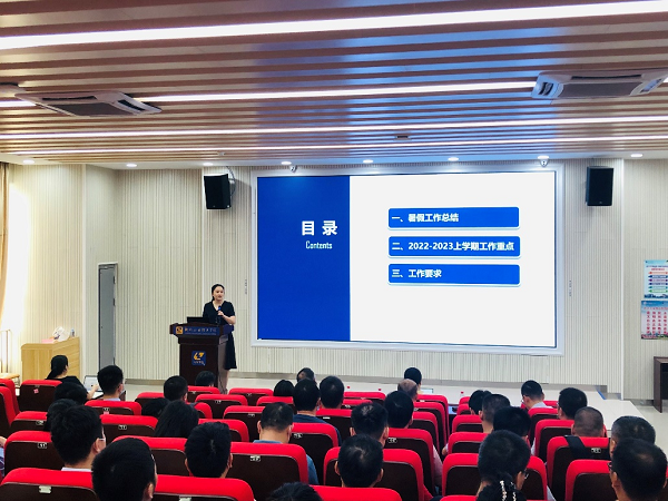 新闻网消息(文、图/汽车工程学院 杨和达)披荆斩棘,扬帆再起航!2022年8月31日,汽车工程学院教职工开学典礼在官塘校区T4D401举行。会议由汽车工程学院办公室主任张迎凤主持。