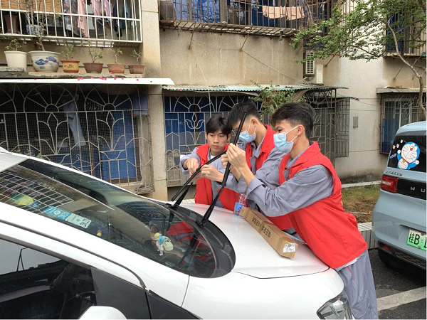 社区志愿服务是党和政府联系青年、青年服务群众的基本场域。“擎鸣”志愿服务队立足社区群众需求,结合专业特长,开展汽车检修与维护保养、空调清洁志愿服务,还为社区清洁道路垃圾、清理杂物等,尽己所能帮助社区创建干净整洁的宜居环境,志愿者们身穿红色马甲为有需要的社区群众提供汽车相关咨询、答疑解惑,检查各类汽车常见故障,补充玻璃水、机油等服务,他们拿着检修工具为有特殊需求的社区群众上门检修,把贴心服务送到群众身边、送进百姓心坎,进一步提升了社区群众的幸福感,真正实现“群众需求在哪里,文明实践就延伸到哪里”。
