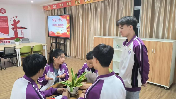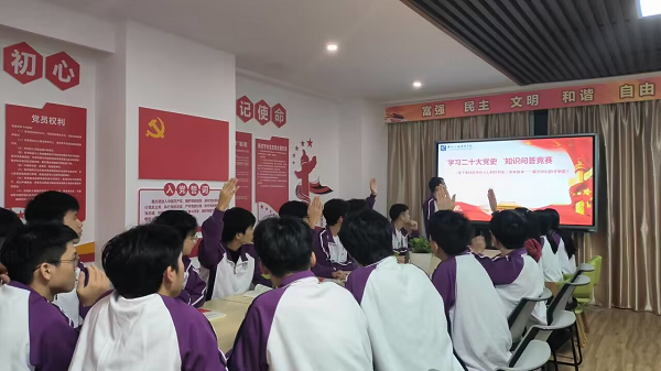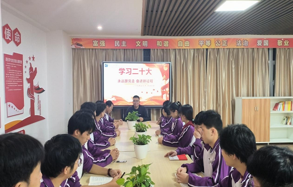 宣讲活动由主题内容学习、小组热议、知识竞赛三个模块组成。首先,辅导员龙双强以国家安全、科教兴国、文化强国等主要内容展开宣讲,组织学生认真学习党的二十大报告原文。其次,2021汽车智能技术2班团支部全体成员在团支书陶胜会的组织下,以小组为单位对二十大报告原文学习与热议。班级班长刘九洋做了心得分享:“党的二十大报告给人以真理的力量,信仰的感召,方向的指引,奋进的信心,作为一名学生干部,我深刻感受到了习近平总书记对青年人的殷切希望,我们必须坚定不移听党话,跟党走,在专业学习中提升个人技能,在志愿服务中绘出青春色彩,努力成长为有理想、敢担当、能吃苦、肯奋斗的新时代青年。”最后,全体成员在愉快的知识竞赛抢答氛围中结束了本次主题内容学习活动。