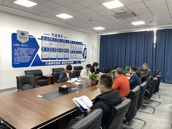 参观完车间后,弗迪人事部门相关负责人与我院教师们进行了会议交流并交换意见。首先,吴星院长向弗迪公司简单介绍了柳州职业技术学院以及汽车工程学院的概况,提出我校机电设备维修与管理专业及汽车新能源汽车技术专业与弗迪电池的用人需求很契合。弗迪电池人事经理陈经理对此想法表示认同,并提出弗迪电池南宁三个基地的建成投产需要大量优秀的人才参与,非常欢迎柳州职业技术学院的学生能够参与建设,并表示目前已经在我校开展了校招的流程。此外,吴星院长与陈经理还就校企合作、设立订单班、冠名班以及产业学院的初步想法进行了交流与沟通。最后,吴星院长诚挚的邀请弗迪公司入柳职院实地考察,了解学校及学生的实际情况,有利于双方的交流与沟通,并形成长期的合作关系。