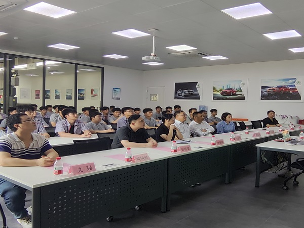 新闻网消息(文、图/ 汽车工程学院 甘育露)为做好2021级SGAVE(中德)班学生的实习和就业前期准备工作,2023年6月2日下午,汽车工程学院在T4-C102教室(上汽大众理论教室)召开2021级SGAVE(中德)班学生专场双选会,一汽奥迪桂林世奥销售服务店总经理冯恩和、服务总监李秋群、人力资源总监胡贤平,桂林龙星行汽车销售服务有限公司人事主管唐丽娟、车间经理彭祥豪,汽车工程学院党总支书记韦耀业,SGAVE项目负责老师计端、文强,2021级中德班51名学生参与会议,会议由学生科长曾志主持。