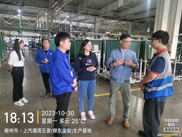 新闻网消息(文/汽车工程学院 樊李禛 图/汽车工程学院 杨瑞蔚)2023年10月30日,汽车工程学院教务科科长朱恩洲、2022级学生辅导员樊李禛、相关实习指导老师杨瑞蔚,于当天下午17:30赶赴上汽通用五菱(柳东宝骏)生产基地看望第一批实习的学生。企业相关人事主管及车间工段长陪同此行。