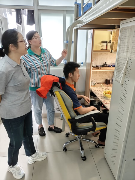 新闻网消息(文 汽车工程学院 樊李禛/图 汽车工程学院 樊李禛 吴洪展)2024年4月29日,为进一步了解学生的学习生活状况,掌握学生需求,提升管理服务水平,汽车工程学院2022汽车检测与维修技术(后备兵员)1班的专业班主任范利红老师和辅导员樊李禛老师深入学生一站式社区,进入宿舍开展实地调研活动。