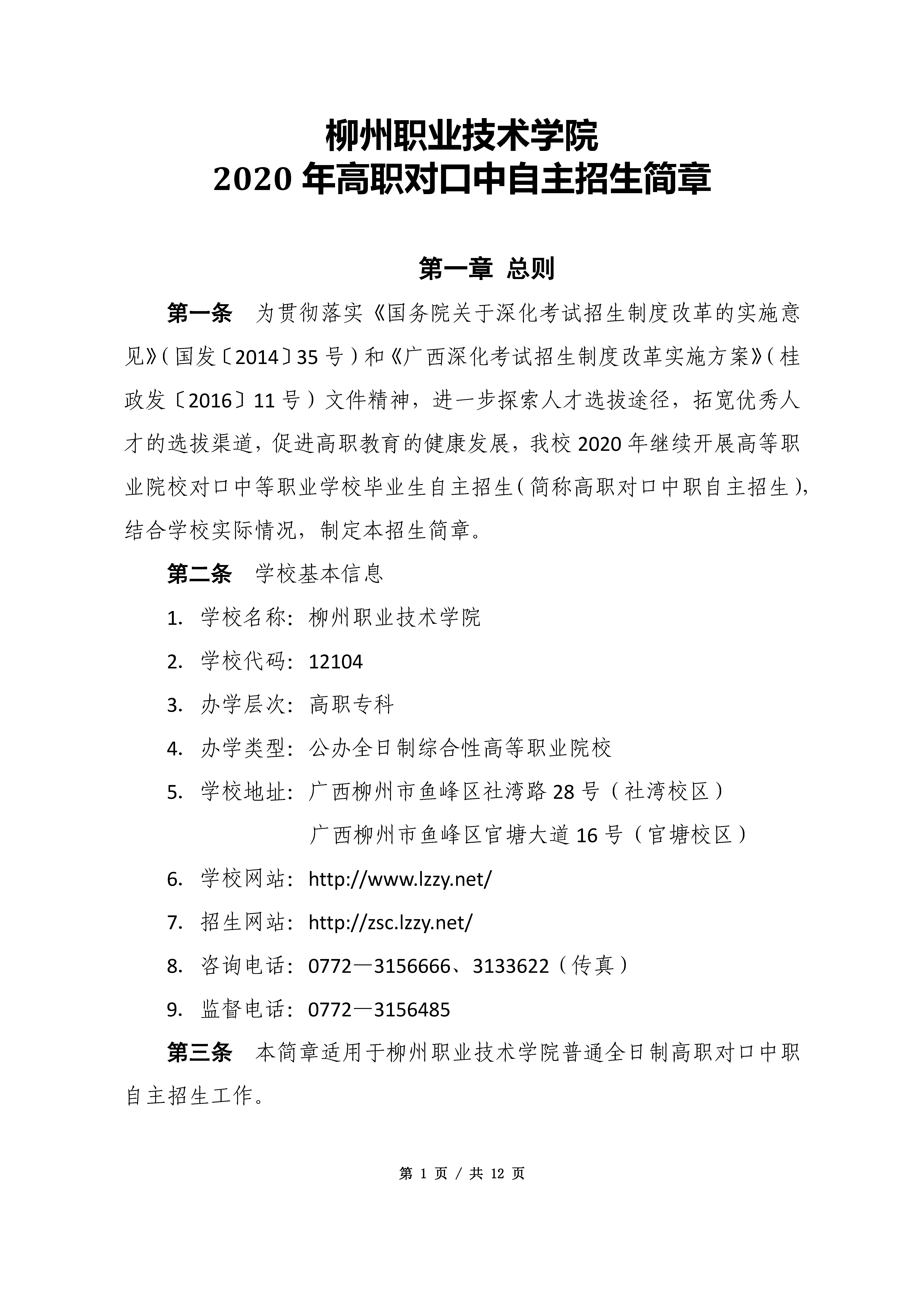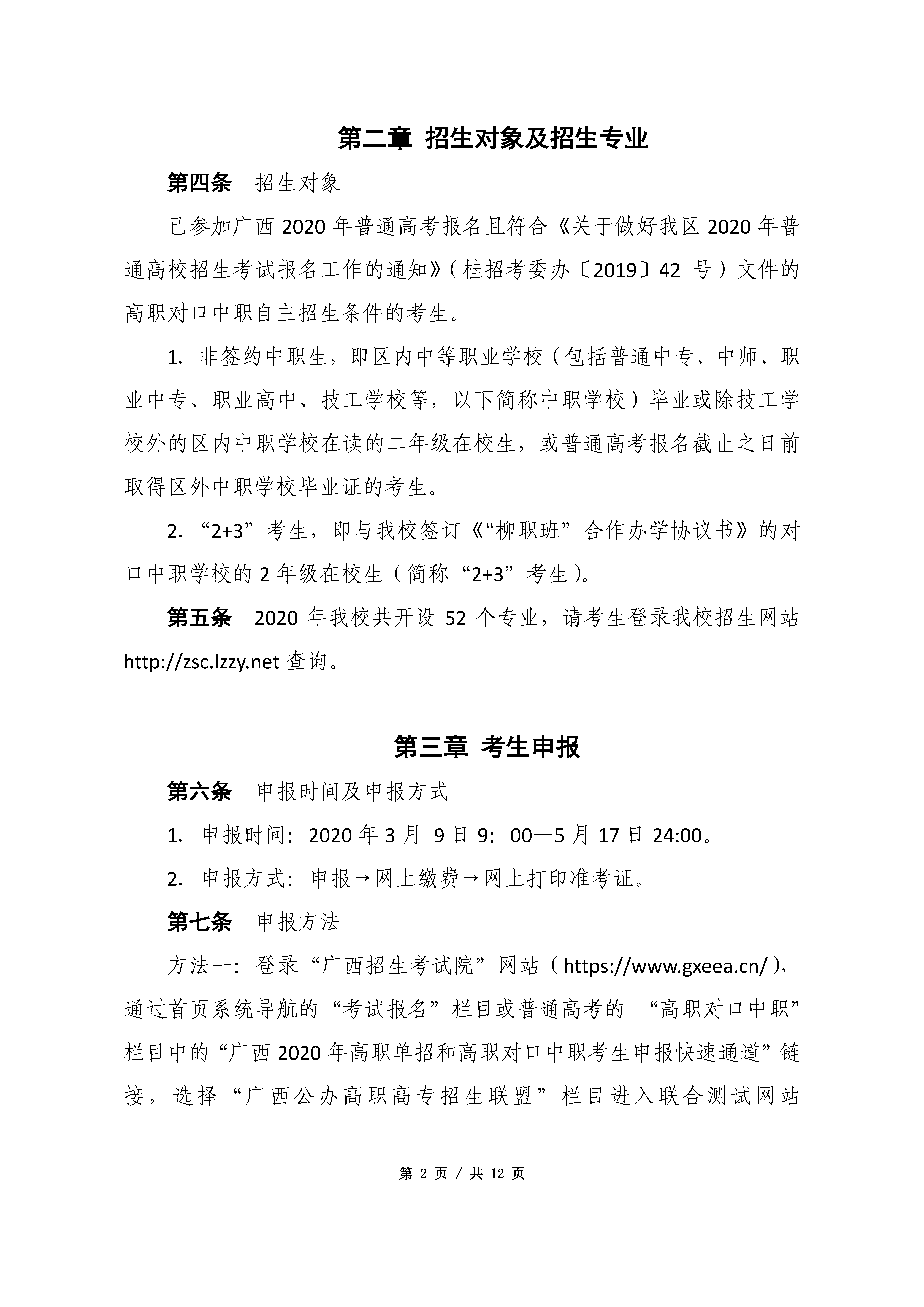 柳州职业技术学院2020年高职对口中职自主招生简章