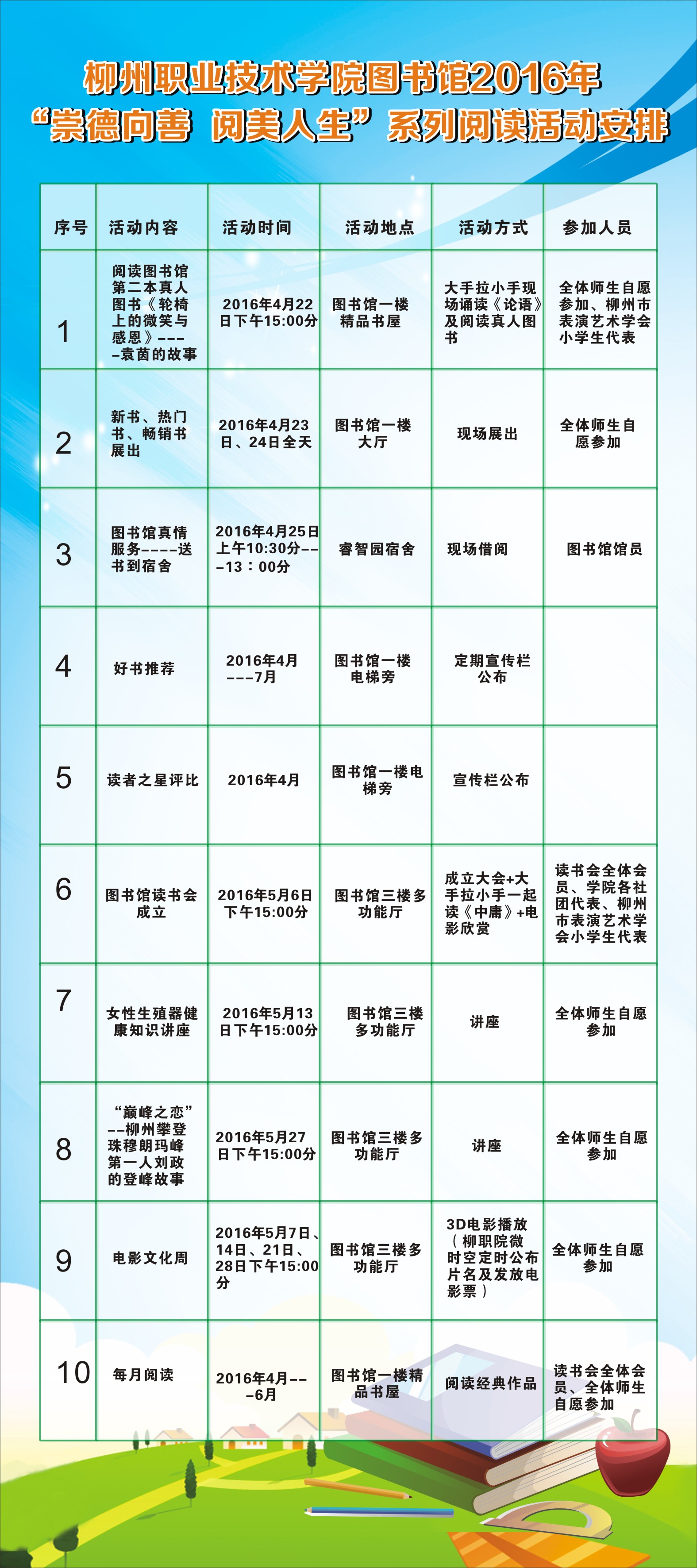 2016年“崇德向善 阅美人生”系列阅读活动安排