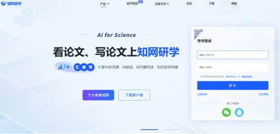 2.点击研学平台首页右侧“账号登录”,根据提示进行注册/登录(已有知网账号可直接登录,无知网账号可用手机号注册个人账号)