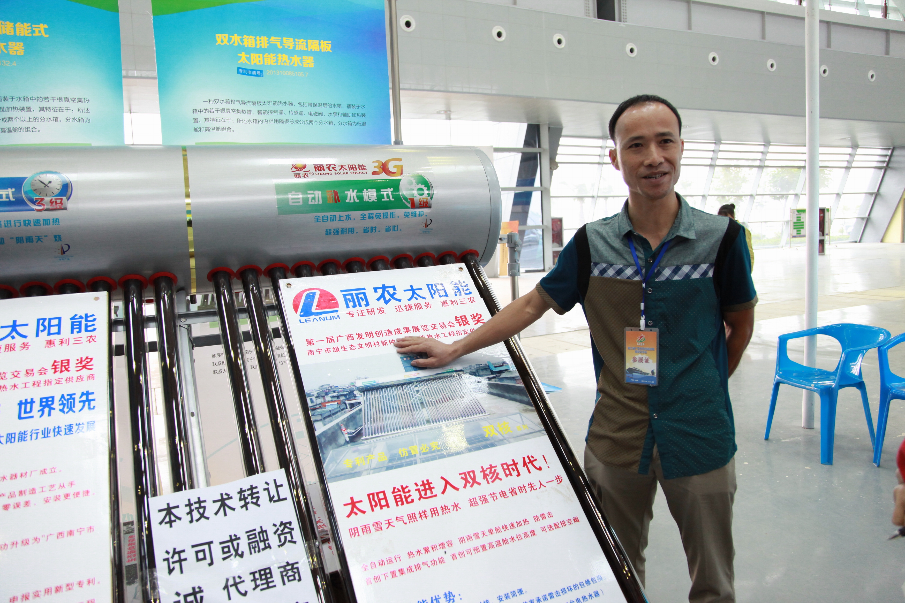 “丽农”太阳能有限公司总经理黄善同出席广西第二届广西发明创造成果展览交易会并为来宾介绍他自主研发的第二代节能环保太阳能热水器