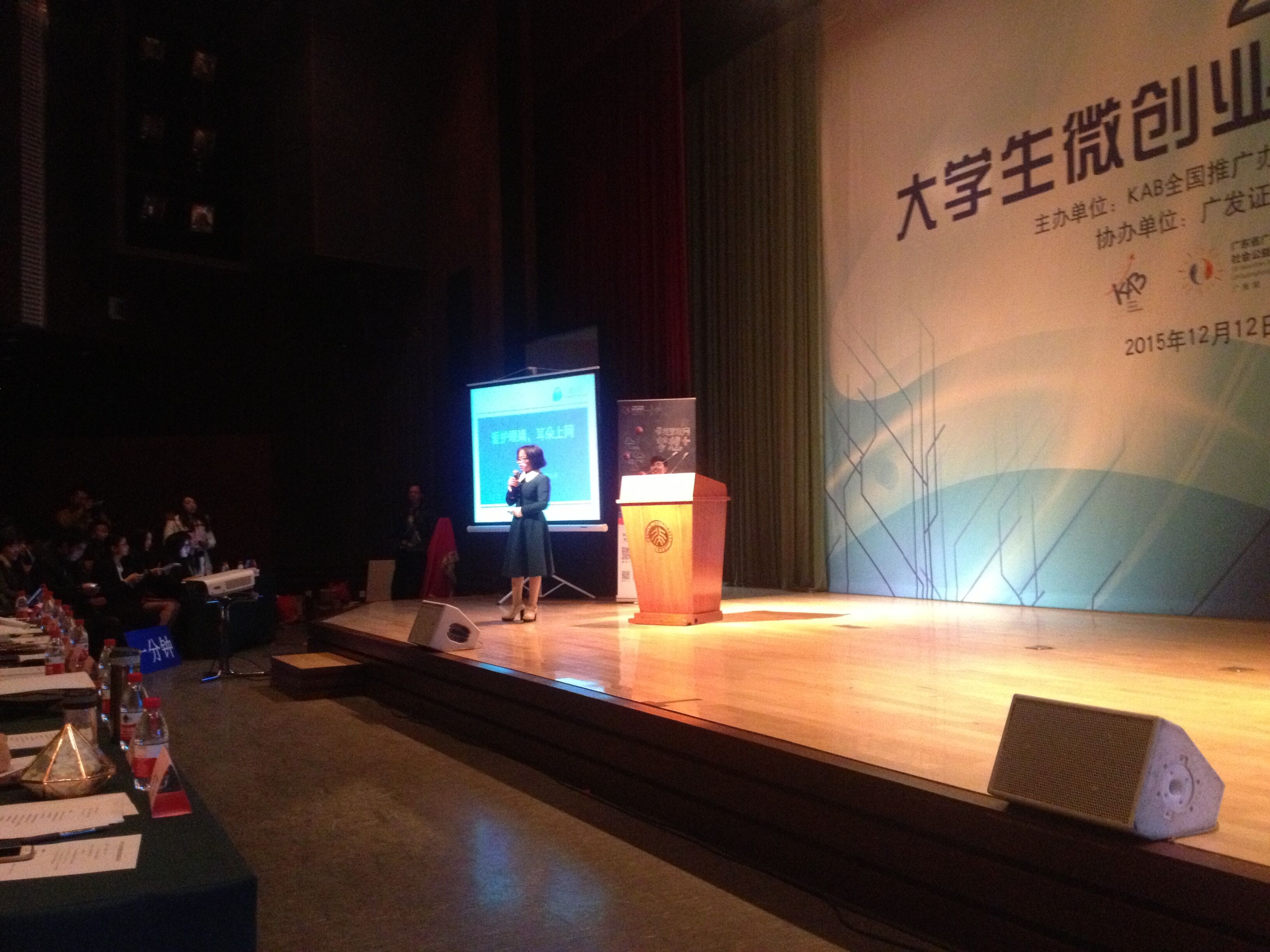 在北京大学百年纪念讲堂,“2015年大学生微创业行动”金奖获得者吴雅婧在做路演。