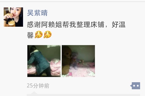 总之,只要是我们需要而又来不及去做的事情,阿赖都会义不容辞地伸出援手。也因为如此,室友们也叫她阿赖姐,虽然年纪不是宿舍里最大的,但是做什么事都会考虑得很全面、做事很周到,像一个大姐姐一样体贴、照顾同宿舍的室友们。