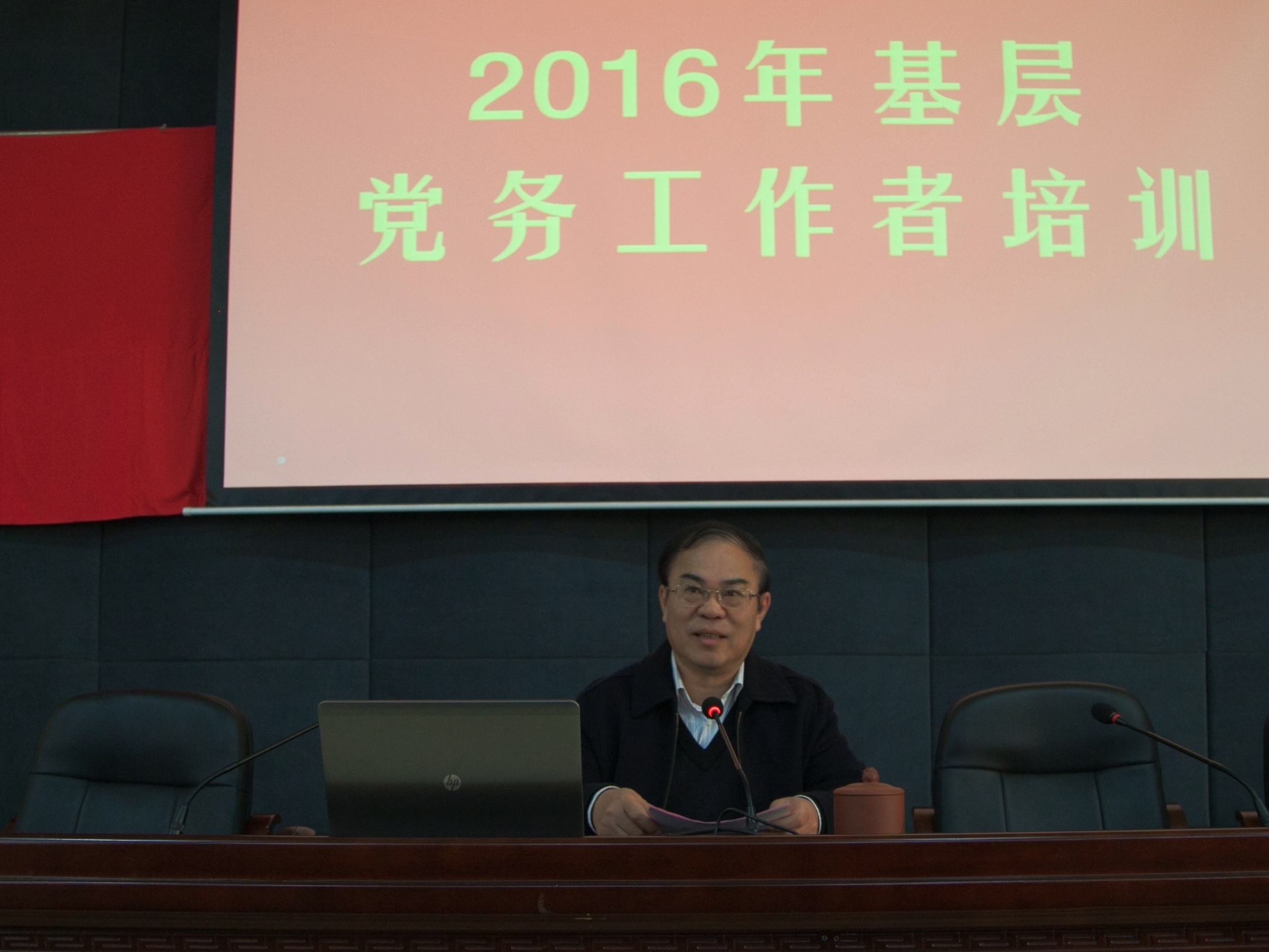 新闻网消息(文/林爱鲜 图/朱敬民、李世峰)为了进一步提高学校新一届基层党务工作者的能力和水平,更好地推进“两学一做”学习教育,12月9日上午,学校在100报告厅举行基层党务工作者培训。学校党委书记朱伟才、副书记阳旭,全校各基层党务工作者近120人参加了培训会。会议由学院党委副书记阳旭主持。