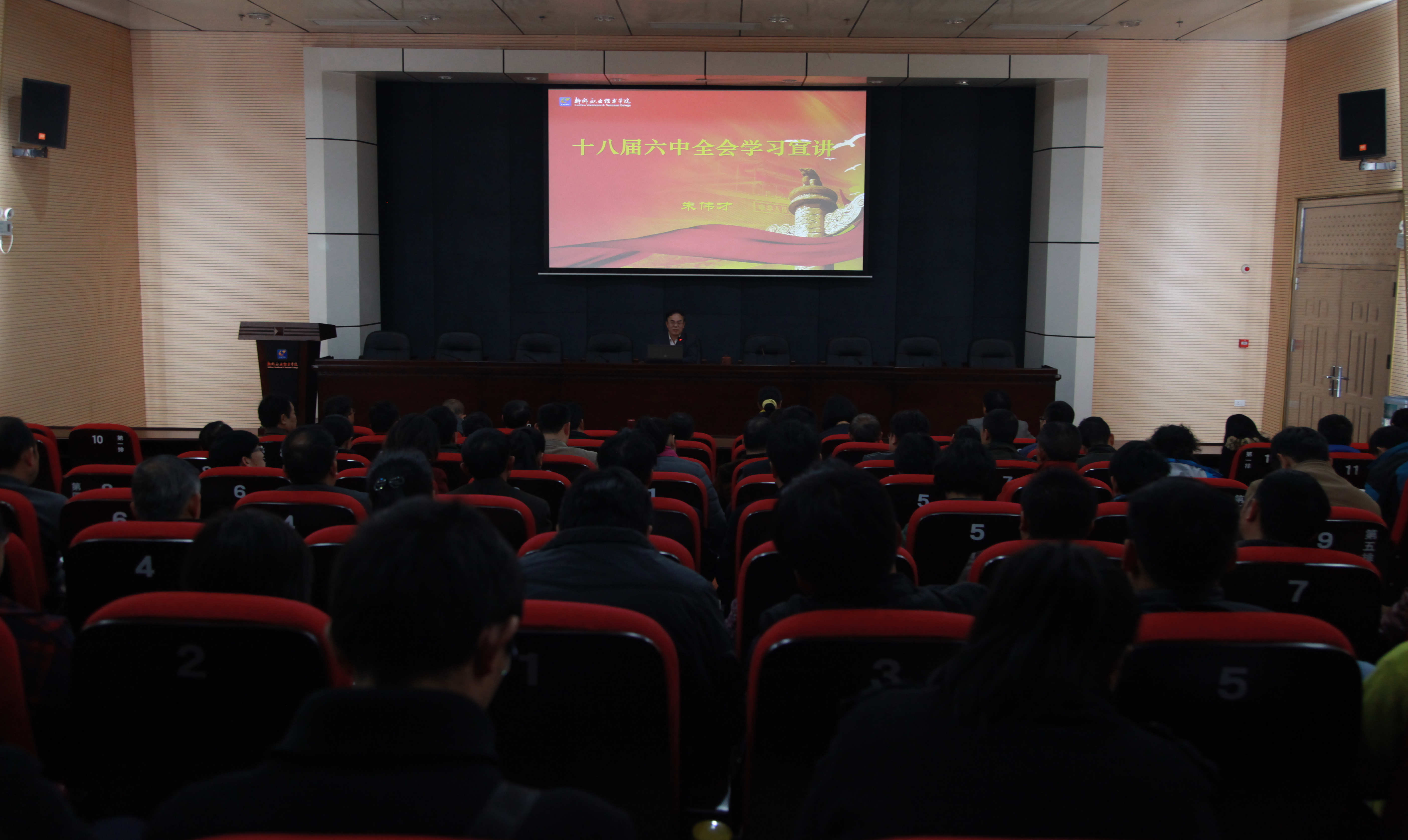 新闻网消息(文/党委宣传部 韩霄 图/党委宣传部 朱敬民、李蓉连)为深入学习宣传贯彻党的十八届六中全会精神,准确把握全会的精神实质,深刻领会全会的重大意义,12月14日下午,我校举行党委中心组(扩大)理论学习会暨党的十八届六中全会精神辅导报告会,由党的十八届六中全会精神柳州市宣讲团成员、校党委书记朱伟才教授作专题报告。全校科级以上干部参加会议,校党委副书记阳旭主持。