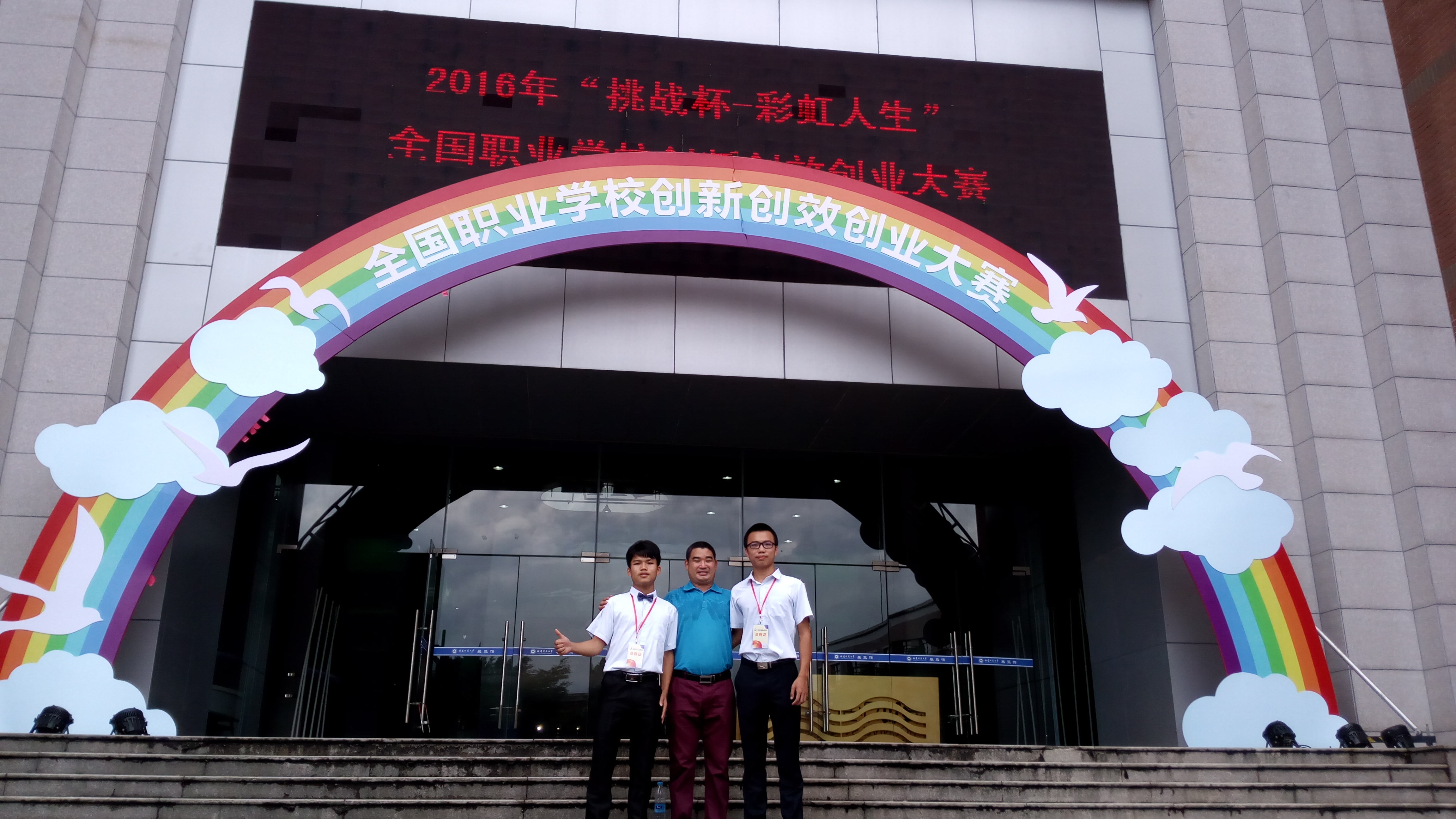 2016年,带学生参加“挑战杯—彩虹人生”全国职业学校创新创效创业大赛,经过一番苦熬拿下了金奖;创新创业项目作品《柳州博奥机械科技工作室》参加2016年“挑战杯—彩虹人生”广西职业学校创新创效创业大赛,又棒回了特等奖。