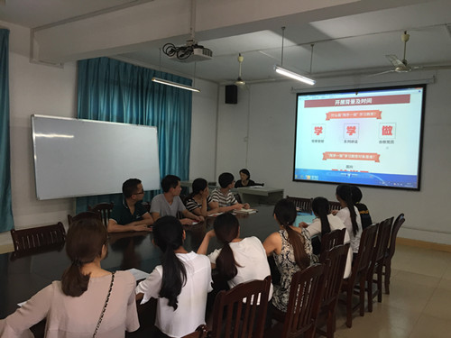 6月6日下午,支部党员在达理楼303会议室开展了“两学一做”学习动员会,二支部书记陈晓萍及2014级、2015级在校生党员、发展对象参加。陈老师对什么是“两学一做”做了全面解读,并强调基础在学,关键在做,要求全体成员对照查摆自身问题,针对性地开展学与做,做四讲四有合格党员。陈老师还介绍了6-7月二支部“五个一”学习活动安排,即:参加一次党的知识竞赛、重温一次入党誓词、讲一次微党课、分享一次学习心得以及参加一次义务劳动。要求全体成员合理安排时间,积极参与到学习活动中来。