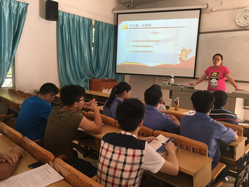 新闻网消息(通讯员/机电工程学院 周艳 摄影/机电工程学院 周艳、韦柳宁)6月24日下午,机电工程学院学生第三党支部在德润楼202教室举办“两学一做”专题学习教育活动。活动由支部书记周艳老师主持,参加学习的有机电一体化技术专业各年级党员及入党积极分子约12人。