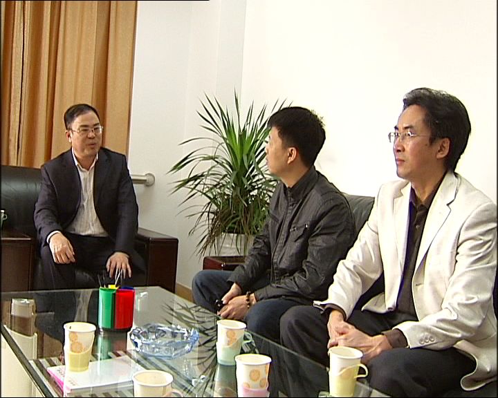 我院党委书记朱伟才、副书记阳旭与栏目组负责人座谈(视频截图)