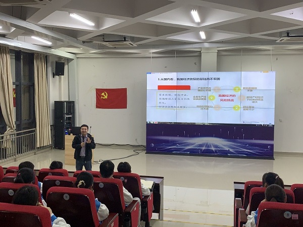 学院邀请马克思主义学院教师、柳州市“青年讲师团”讲师赵佃学以《正确认识当前我国经济发展和大学生就业形势》为题,作开班“第一讲”。赵老师讲座中频繁出现“高质量发展”“柳州旅游”“人民为中心”“干事创业”等热议名词,列举柳职的世界冠军团队、优秀校友黄芝敏等身边事例,给学员们带来一场引经据典、深入简出,生动有趣的讲座。