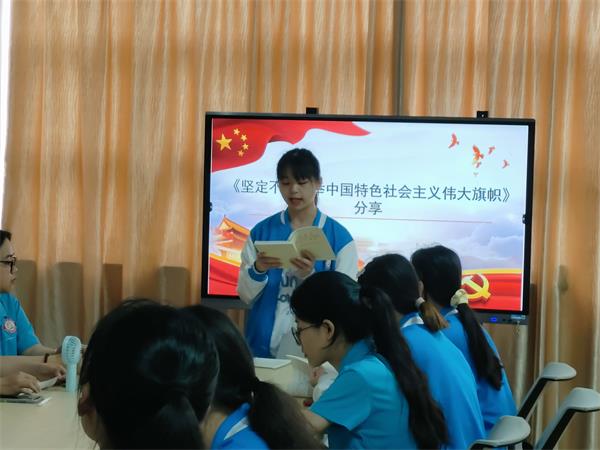 活动首先共同学习《习近平新时代中国特色社会主义思想专题摘编》原文选段。入党积极分子莫显娇以及凌楚玥分别领读书目中“坚定不移高举中国特色社会主义伟大旗帜”及“推动经济高质量发展”章节内容,她们均表示:我们需要立刻行动起来,以新担当展现新气象,以新举措实现新作为,才能让初心和使命焕发出耀目的光芒。读书小组成员通过读原文、悟原理,从眼前事、身边事出发,切实读出党性觉悟,读出忠诚信仰,读出责任担当。