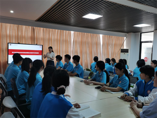 新闻网消息(文/财经与物流管理学院 韦献妮 图/财经与物流管理学院 陈霜)2023年6月30日中午,财经与物流管理学院在“一站式”学生社区开展学习习近平总书记在中共中央政治局第五次集体学习时的重要讲话精神宣讲教育活动,学院组织员韦献妮、分团委老师宋鑫悦、学生党员、入党积极分子以及团学干部参加活动。