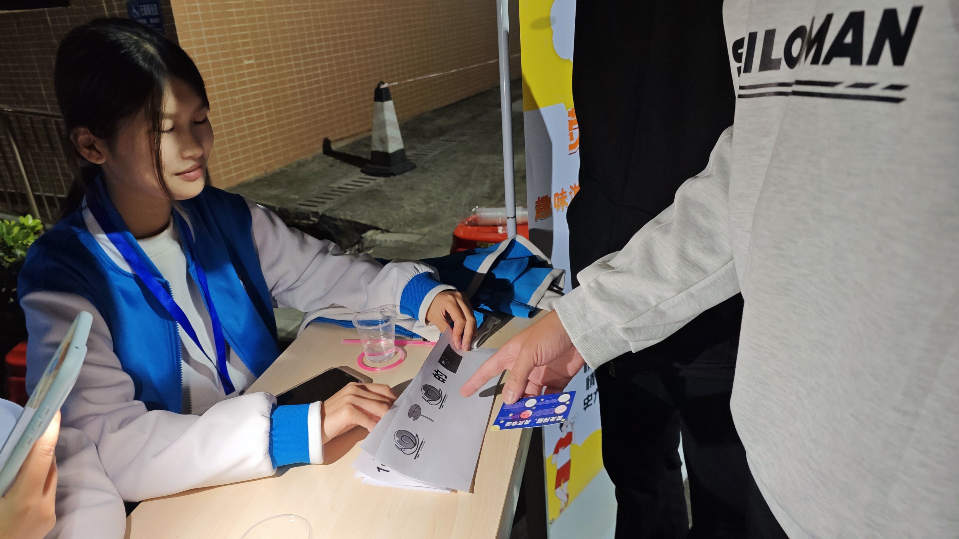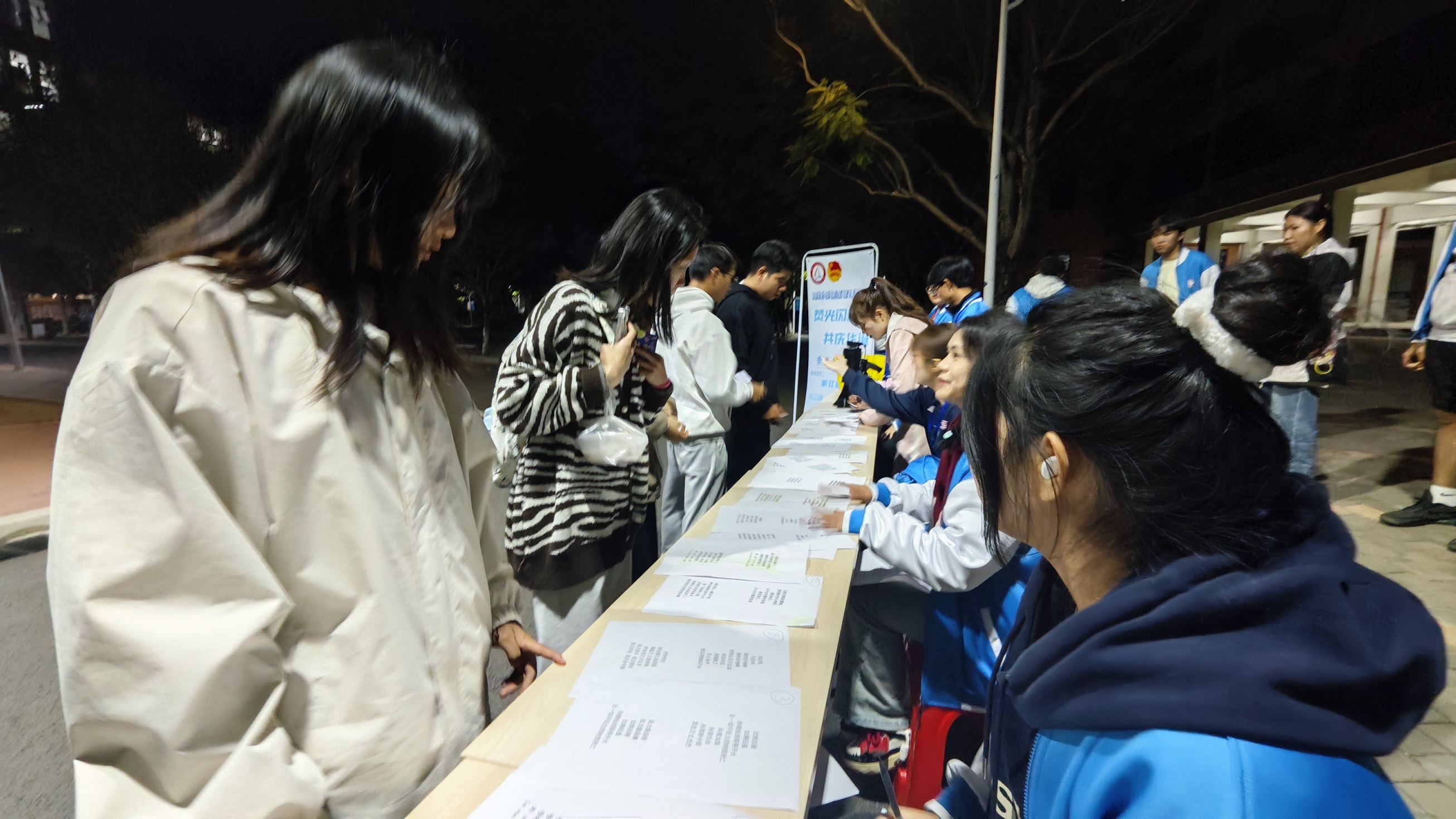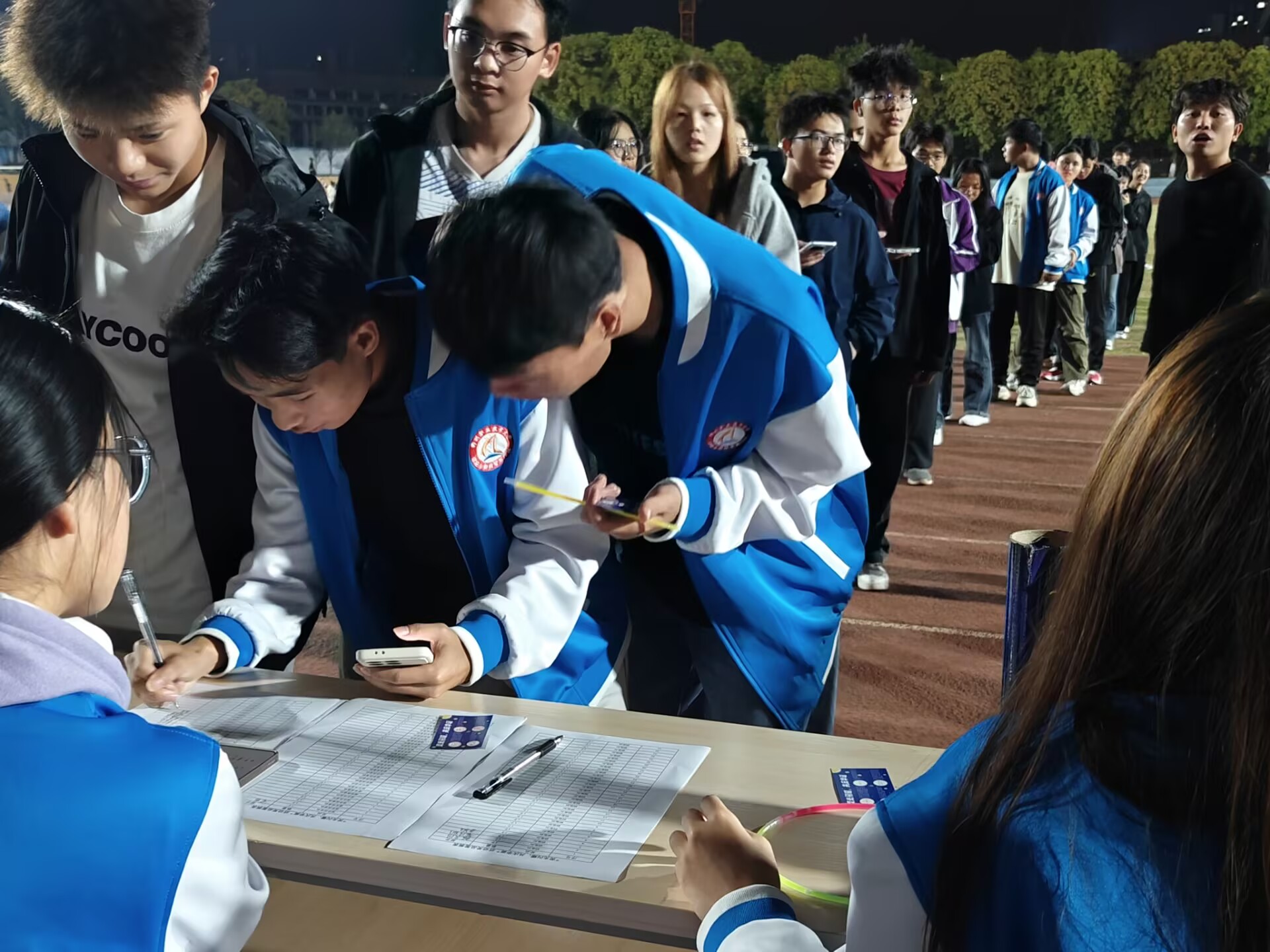 现场同学们有序领取荧光棒
